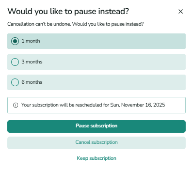 A pop-up will appear asking if you’d prefer to pause instead.