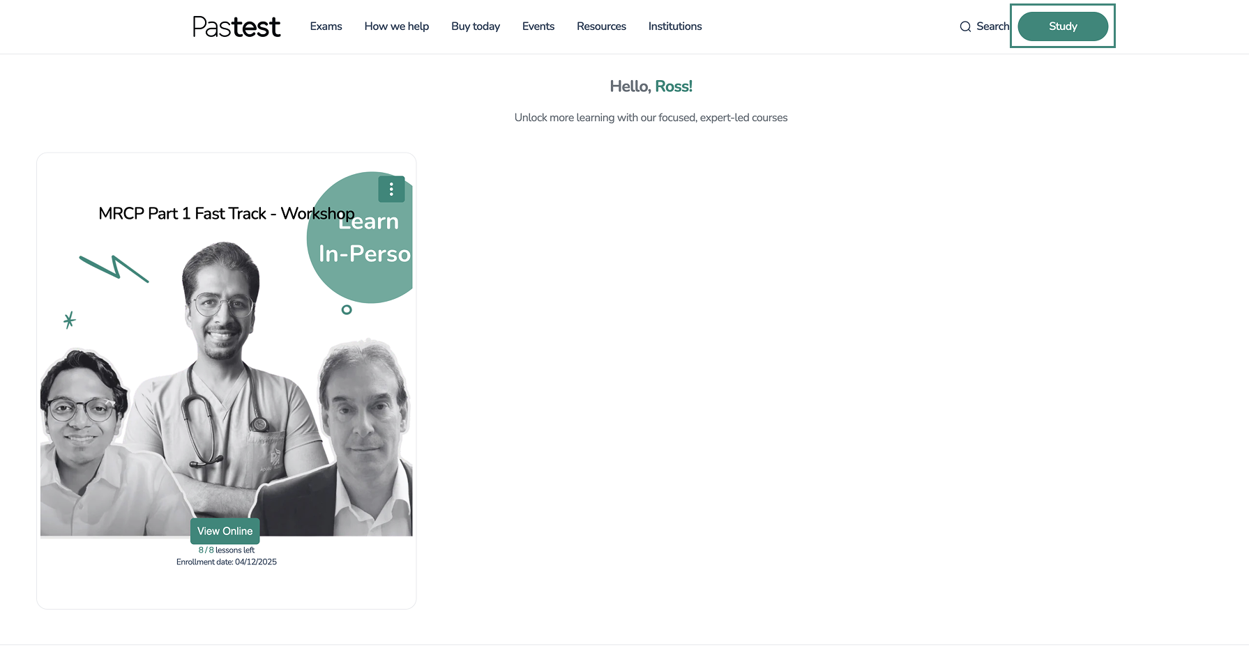 If at any time you wish to get back, you can simply click on the 'Study' CTA which will take you back to your homepage.