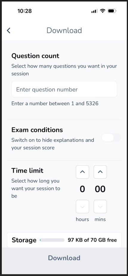 Previously, sessions were downloaded vai the Qbank filters and Past Papers screens, however to improve this we’ve moved and redesigned all offline functionality into one dedicated place.